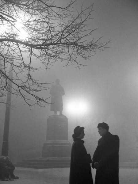 Первая фотография Юрия Кривоносова была напечатана в «Огоньке» в 1953 году и сразу же попала на разворот. Такой выбор был не случаен: на панорамной фотографии, смонтированной из четырнадцати кадров, снятых объективом 50 мм, были запечатлены похороны Сталина.