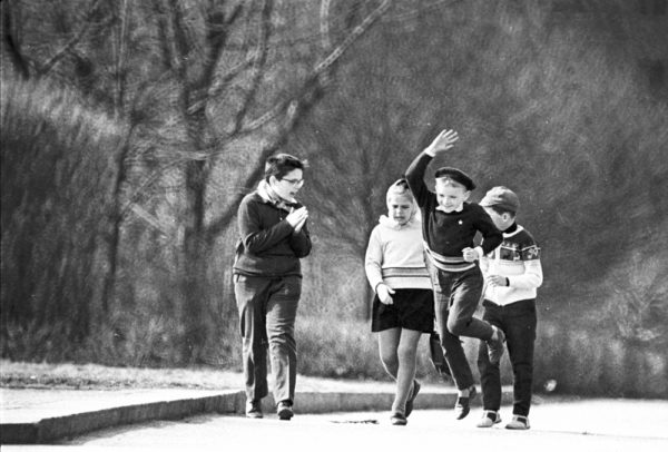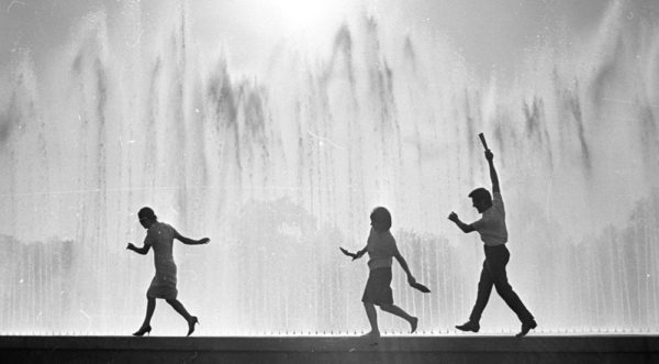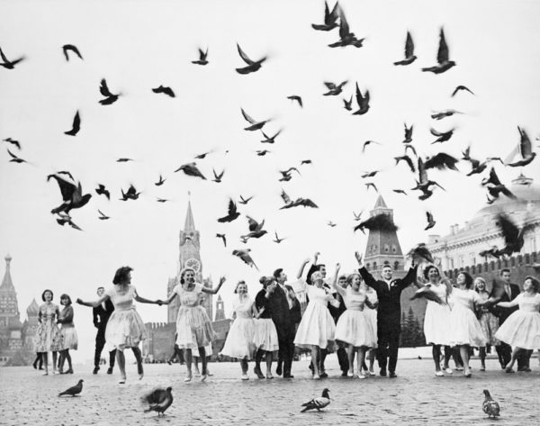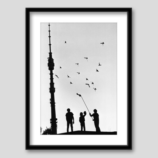 Москва всегда славилась своими голубями и голубятниками (фотография «Голубятники», 1972). Эта голубятня находилась в районе ВДНХ, на Аргуновской улице, где в те годы жил фотограф. Ее было видно из окна дома. Контрастом послужила Останкинская башня. Лаконичное построение кадра – черное и белое и ничего лишнего.